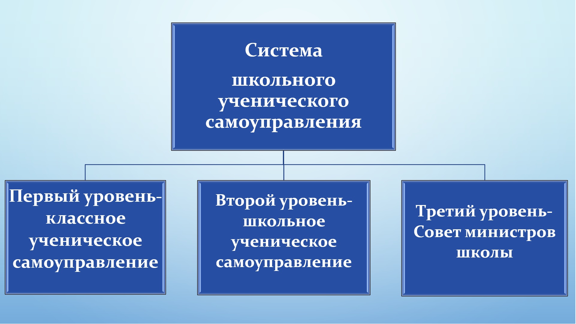 Ученическое самоуправление - форма организации жизнедеятельности коллектива учащихся, обеспечивающая развитие их самостоятельности в принятии и реализации решений для достижения общественно значимых целей.